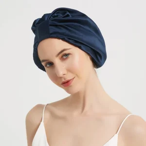 Bonnet de nuit en soie de mûrier pour cheveux longs grand volume