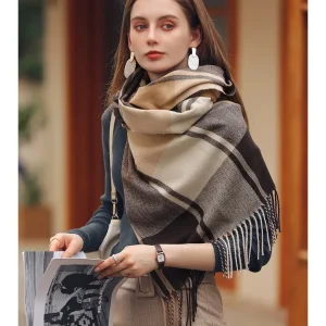 Châle à carreaux style cachemire pour femme