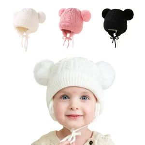 Bonnet bébé chaud façon tricot torsadé uni