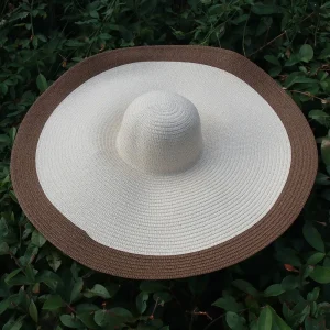 Chapeau bicolore de plage en paille très large