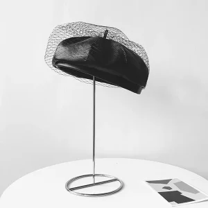 Béret basque en cuir PU à maille