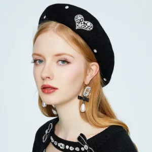 Béret en laine pour femme coeur cadeau saint valentin