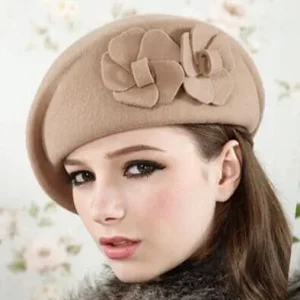 Béret élégant 100% laine à fleurs