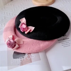 Béret en feutre de laine à noeud papillon