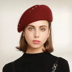 Béret français feutre de laine filet et perles