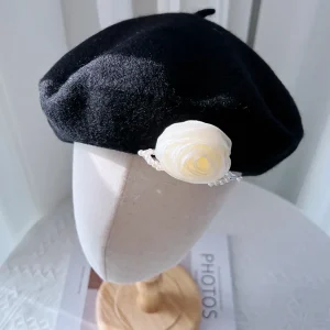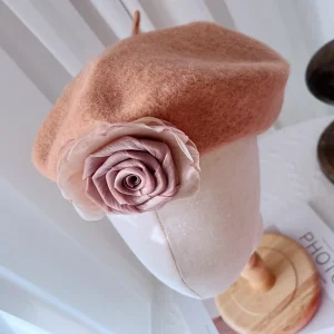 Béret français en laine avec rose d’amour