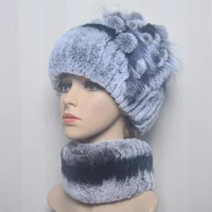 Ensemble bonnet et tour de cou doublé fourrure unisexe
