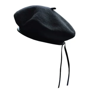 Béret français en Laine et Cuir PU à cordons