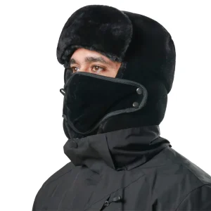 Ensemble bonnet et tour de cou doublé fourrure unisexe