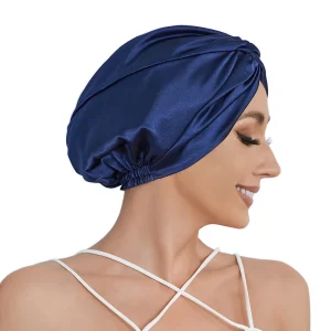 Bonnet de nuit en soie de mûrier pour cheveux longs grand volume