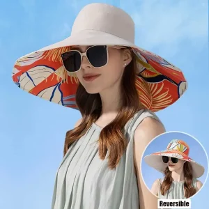 Chapeau soleil femme large bord double face réversible