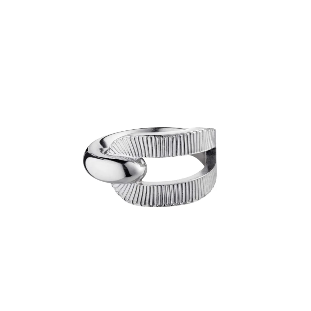 Découvrez cette bague en argent 925/000 inspirée de la texture d’un ruban honorifique. Son motif en relief évoque un tissage épais semblable au « gros-grain », tandis qu’une couche de rhodium protège et rehausse son éclat. Cette bague fait partie de la collection Ruban, dans laquelle vous retrouverez également des colliers, bracelets et boucles d’oreilles.