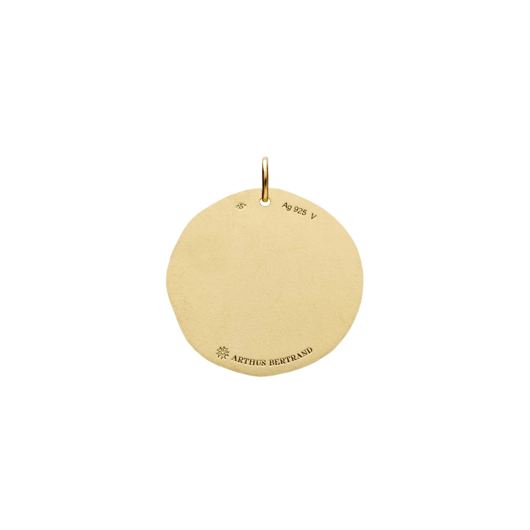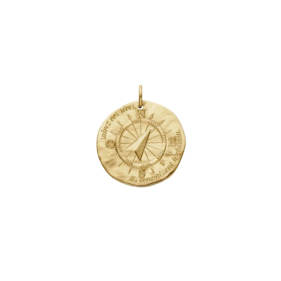 La médaille Boussole est fabriquée en vermeil par les artisans de la Maison Arthus Bertrand. Cette médaille guide et protège celui qui la porte. Le message présent sur la médaille, « Suivez vos rêves, ils connaissent le chemin » invite à nous laisser porter par nos désirs les plus profonds. Cette médaille est la version grand modèle, qui mesure 25mm de diamètre, accompagné d’une finition sablée.