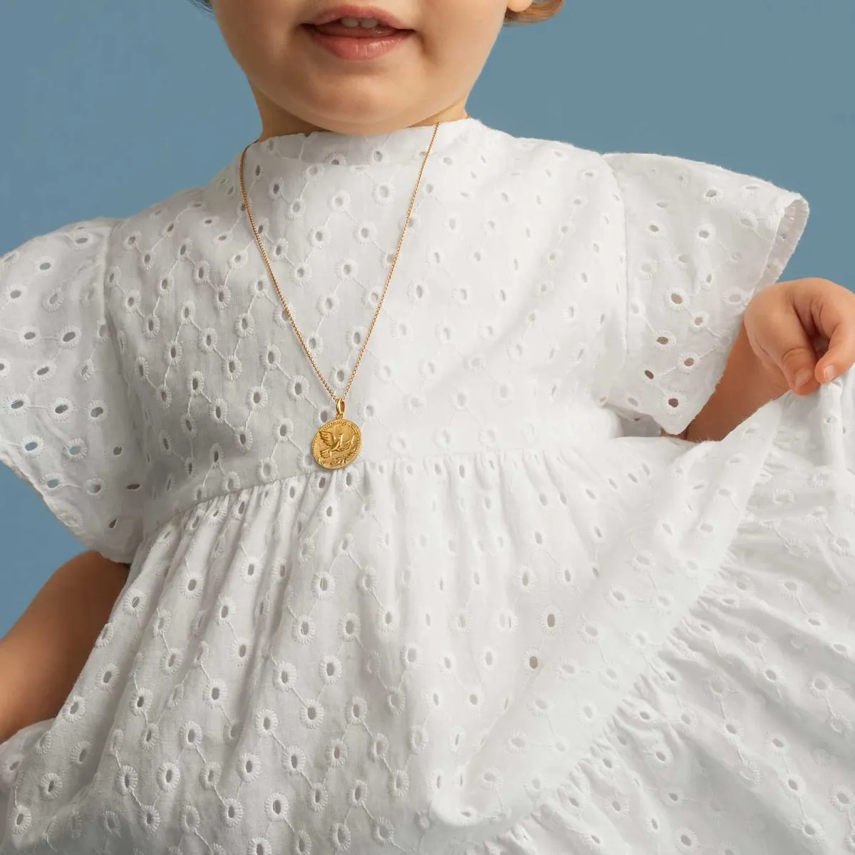 Cette médaille en or 750/000, à la finition sablée, représente une colombe en plein vol, symbole de paix et d’amour. Des perles d’or entourent la colombe, évoquant la douceur d’un ciel étoilé. Les détails en relief apportent une touche de finesse à cette création.