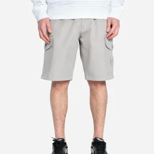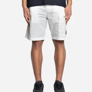 Bermuda cargo, coton extensible Supima®, poches mains zippées, poche arrière bouton-pression dissimulé, poches plaquées à boutons-pression, modèle teint en pièce.