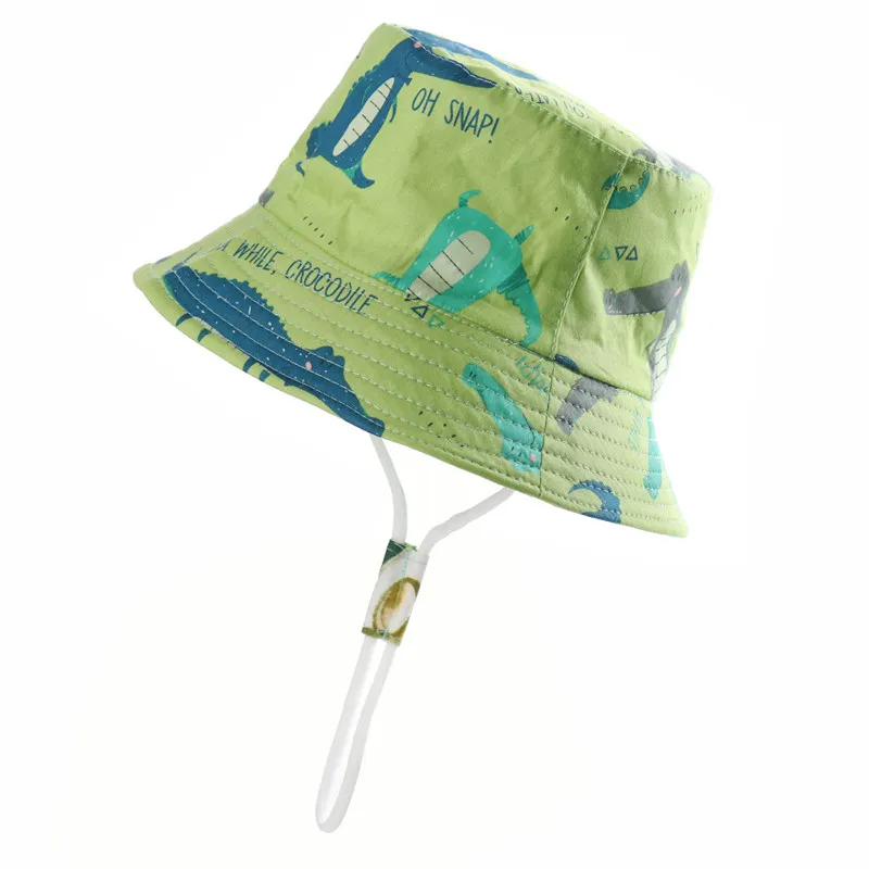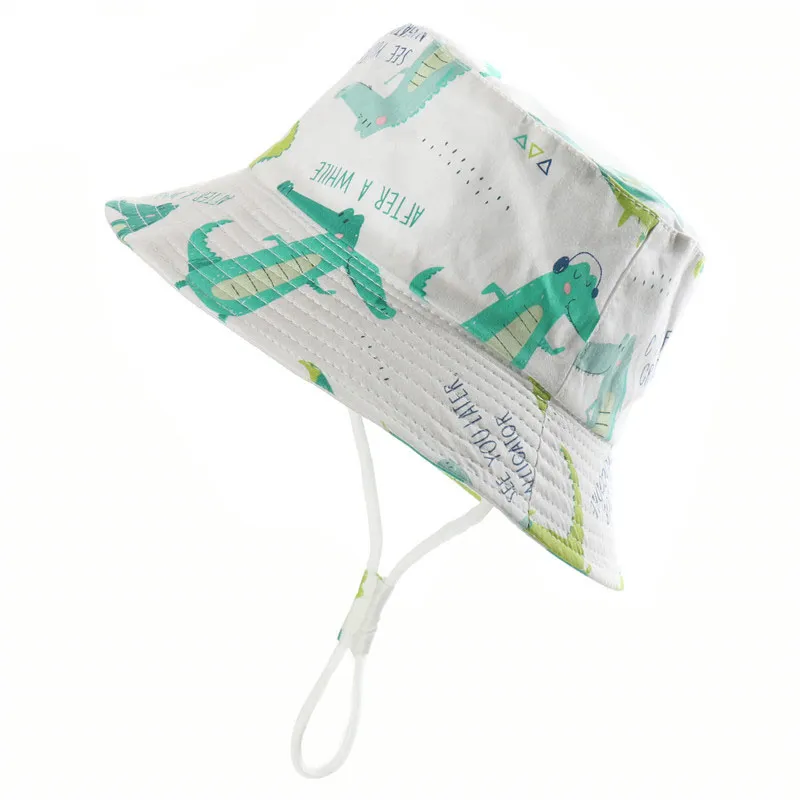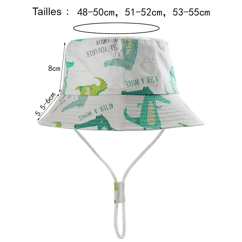 Ce bob à motif crocodile 100% coton à cordons de serrage pour enfant est un accessoire idéal pour la plage et les activités plein air. Ses bords offrent une bonne protection solaire anti-uv pour les saisons printemps/été. Les trois tailles proposées pour garçons et filles sont de 2 à 6 ans. Ce chapeau possède 2 cordons de serrage réglables pour un bon maintien sur la tête ou pour le garder sur le dos. Les couleurs sont pastels et les motifs de dessin animé crocodiles sont très sympatiques. Ce couvre-chef sera bien mettre en valeur la bouille mignone de votre enfant tout en le protégeant totalement du soleil et des intempéries.