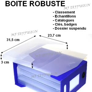 Elle est disponible en 5 coloris ; bleu, vert, rouge, jaune, orange et verte pour faciliter le classement signalétique par couleur.