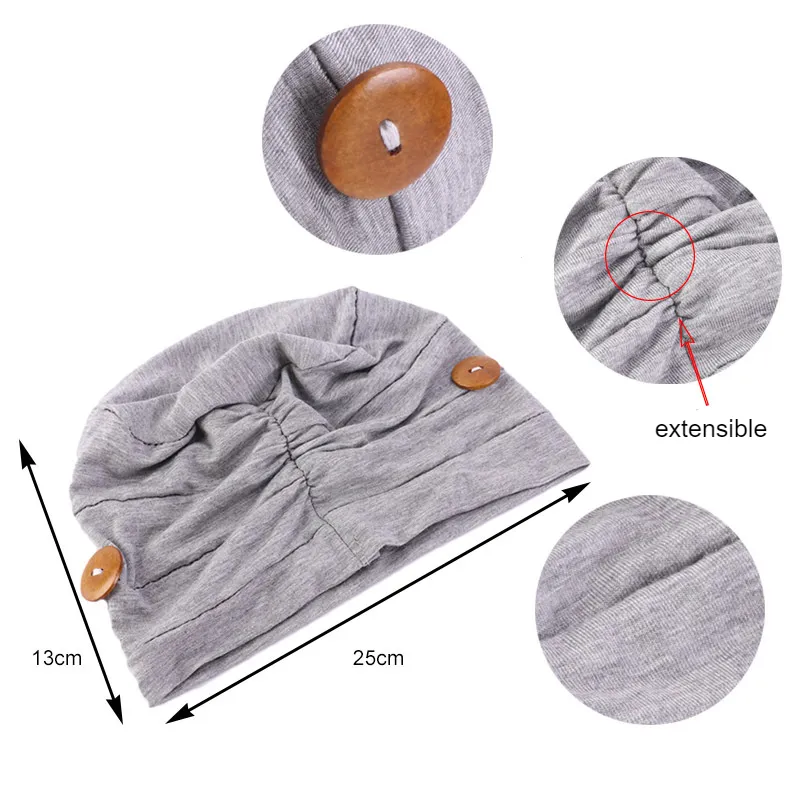 Ce bonnet foulard à boutons en coton pour femme est un modèle classique, pratique pour le port du masque. Il permet de recouvrir entièrement la chevelure. Sa taille unique, extensible convient à toutes les circonférences de têtes moyennes (<58cm). Le tissu et les couleurs sont de belles qualités. Il est un atout pratique, de charme et de beauté pour celles qui suivent une chimiothérapie.