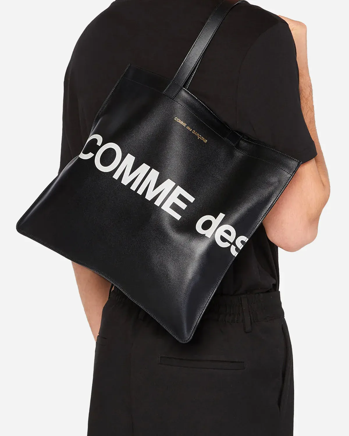 Tote bag, Comme Des Garçons Wallet, Sac de shopping, Huge Logo, cuir noir.