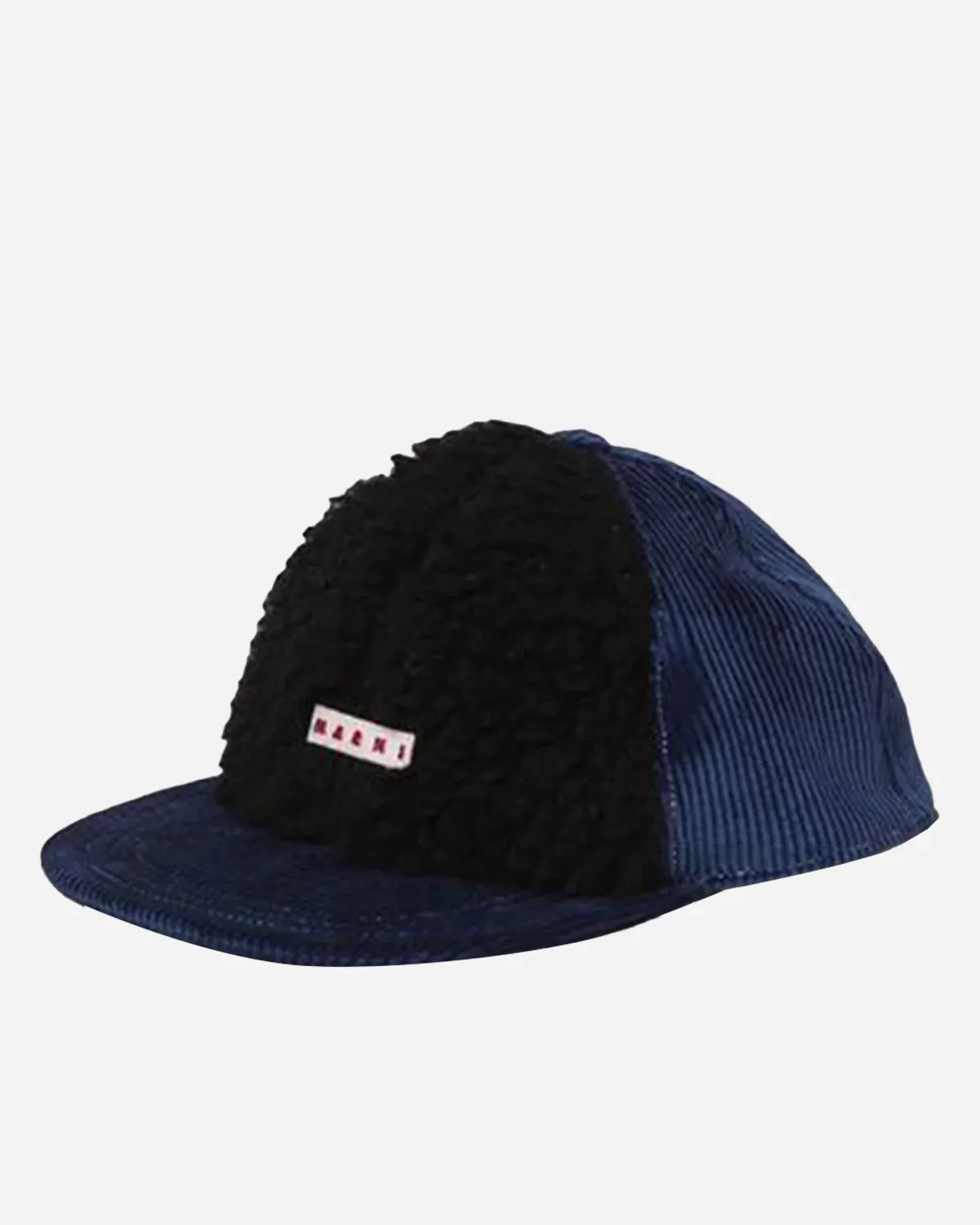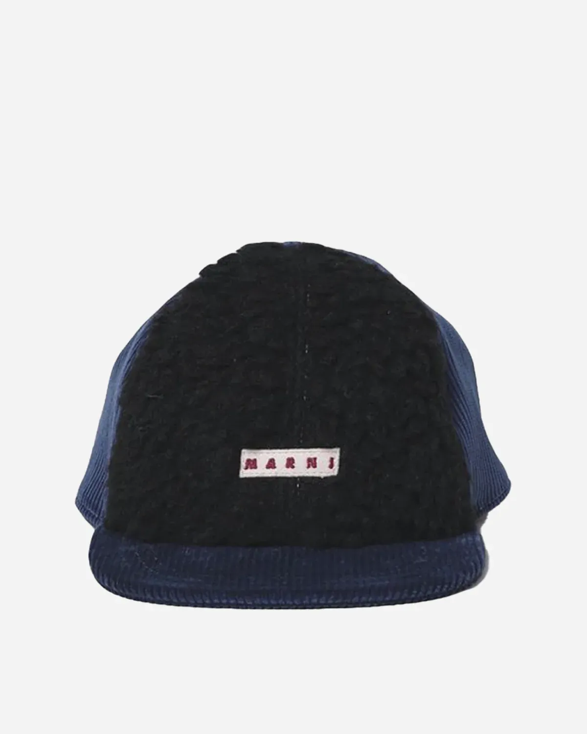 Casquette ajustable Marni, panneau avant en polaire, présentant à l’avant une étiquette comportant le nom de la marque.