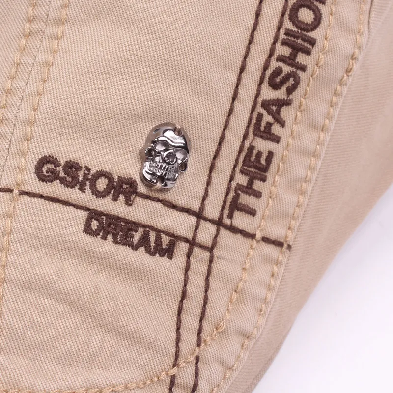 Beaucoup de style pour cette casquette bec de canard fashionstyle unisexe avec broderie et tête de mort. Avec sa souplesse et son design fuselé ce couvre-chef duckbill épouse parfaitement la forme de la tête. De fabrication 100% coton, cet accessoire est idéal pour toutes saisons – En période estivale, respirabilité et protection du soleil garantie. Bien que le type bec de canard reste assez traditionnel et vintage ce modèle légèrement déclassé affiche un look à la fois sport, décontracté fashion avec un côté rebelle, affranchi représenté par le pins skull (petit crane de mort). Taille unique ajustable grâce à un système de fermeture à boucle, idéal pour un réglage facile par serrage.