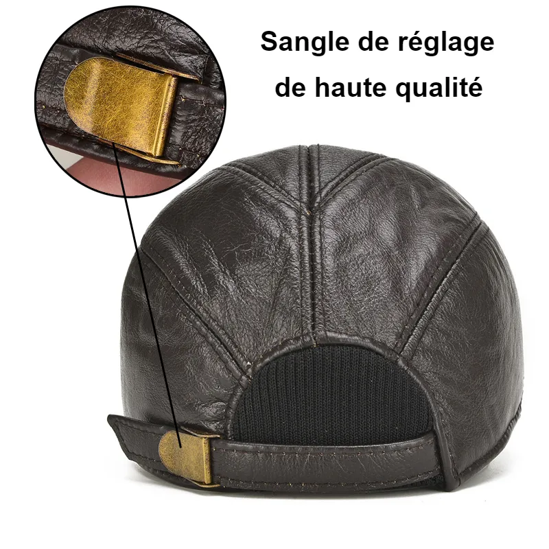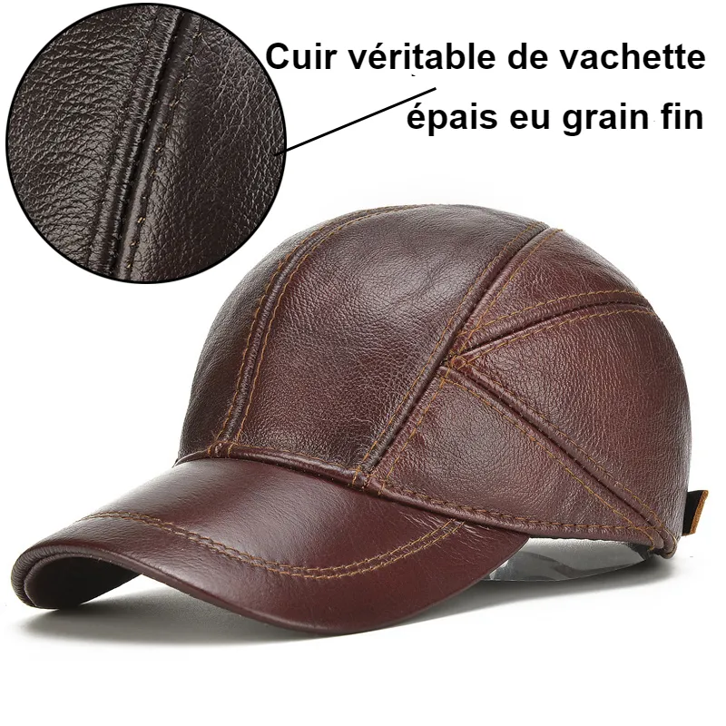 Beaucoup de style et d’élégance pour cette casquette de baseball en véritable cuir de vachette. Avec sa forme et son design sportif décontracté ce couvre-chef offre un confort de port exceptionnel. Le cuir épais au grain fin de vachette tient particulièrement chaud et permet une protection idéale pour les périodes de mi-saison. Taille unique (56-61cm) ajustable grâce à un système de serrage à boucle, facile à régler. Article de luxe qualité premium, satisfaction 100% garantie!