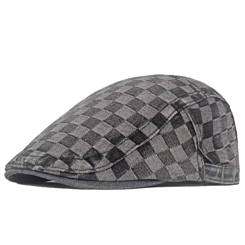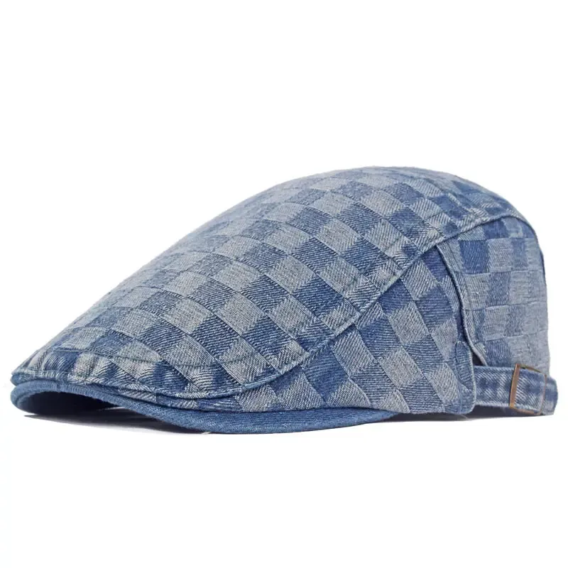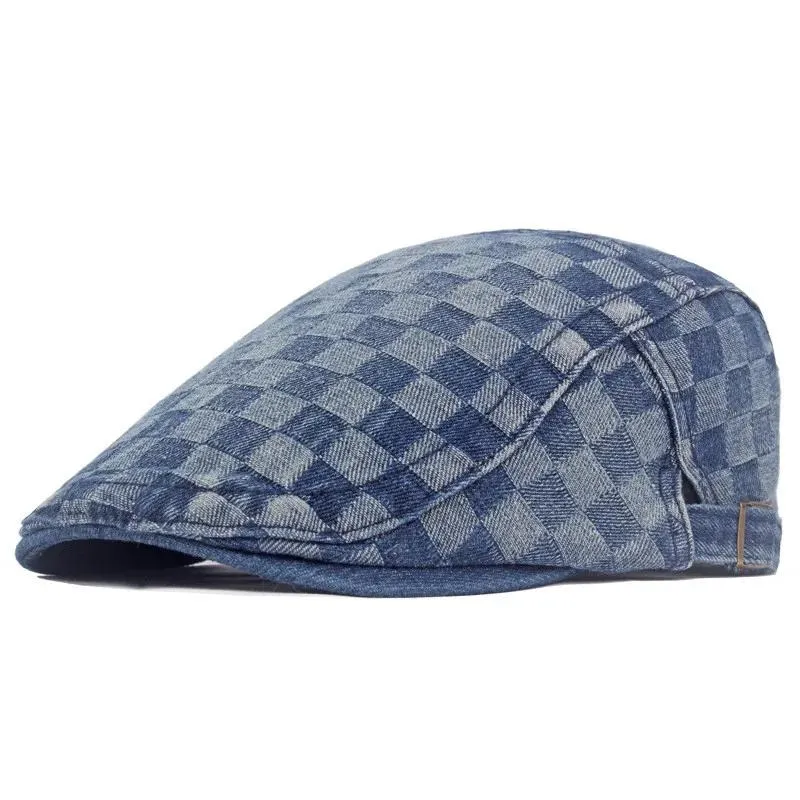 Casquette plate damier en denim
