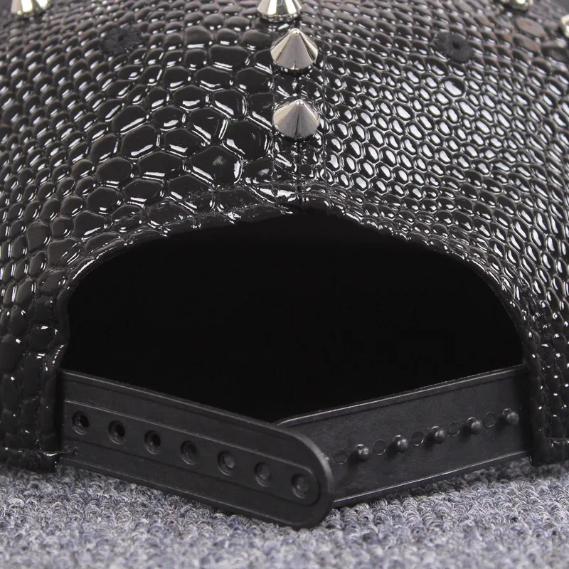 Cette casquette snapback cloutée en simili cuir croco ne manque pas de style et d’originalité. Ce couvre-chef 100% cuir PU de haute qualité arbore une visière droite très caractéristique garnie de rivets métalliques brillants. La couronne en cuir Pu style peau de crocodile est en grande partie cloutée . L’attache à boutons, typique du snapback, offre un réglage ajustable sur toutes les tailles adultes (du 54 au 62cm). Cette magnifique casquette est idéal pour afficher une personnalité à la fois rebelle et décontractée. Satisfaction d’achat 100% garantie !