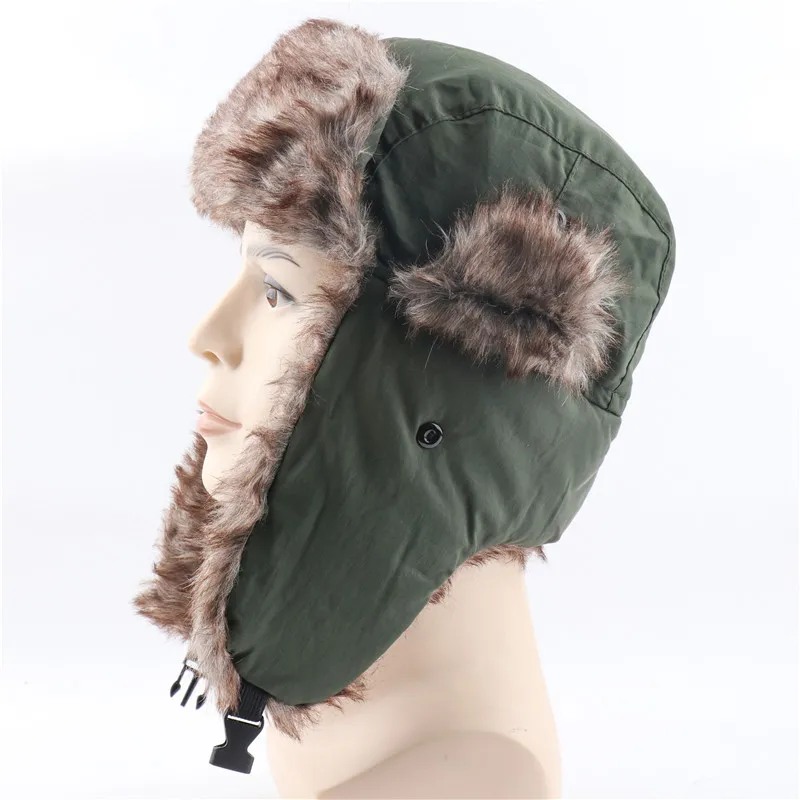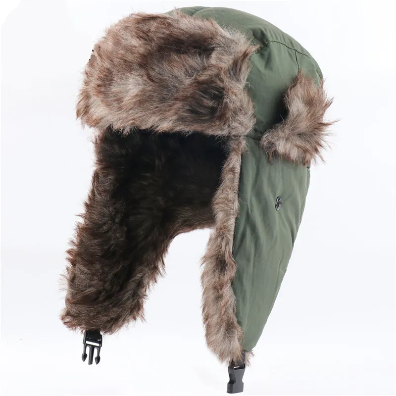 Ce chapeau de bombardier imperméable avec doublure thermique en fausse fourrure est le couvre-chef le plus adapté au grand froid hivernal. Protection, chaleur et confort de port, garantie pour cet accessoire exceptionnel au charme russe. Pour la taille aucun souci, ce modèle unisexe convient à toutes les circonférences de tête adulte (55-61cm). Ce couvre-chef au style pashanka, militaire ou trappeur possède des oreillettes clipsables. Cet article de qualité sera résister à l’usure ainsi qu’aux intempéries.