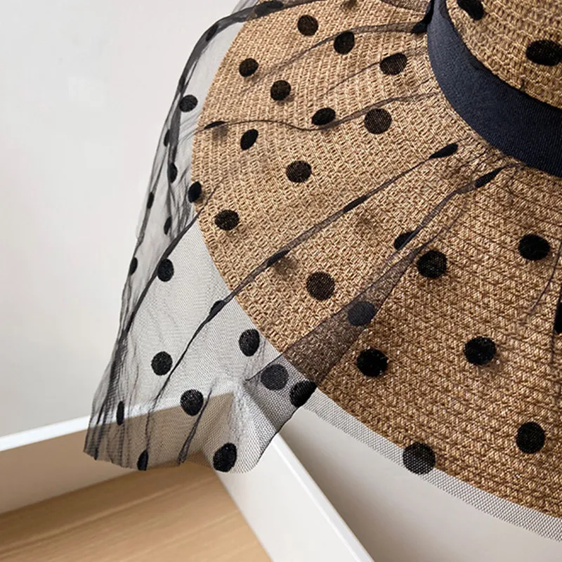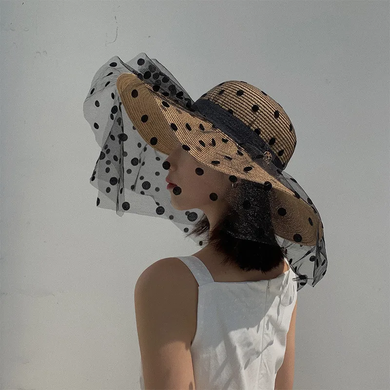 Ce chapeau de paille à voilette à pois est l’accessoire pratique et chic de l’été. Le tressage serré assure une protection optimale anti-uv. Grâce à un cordon de serrage la taille peut s’adapter à toutes les circonférences de têtes (55-58cm). Avec sa magnifique voilette à pois noir ce chapeau apportera à vos tenues une belle dose d’élégance sur la scène estivale .