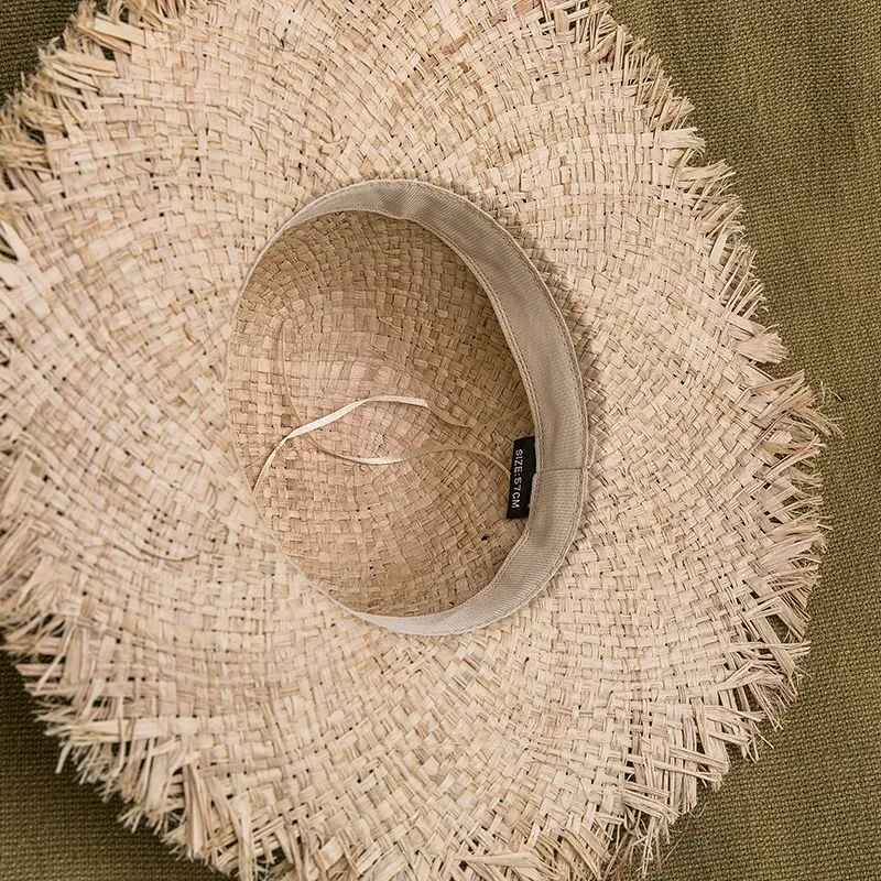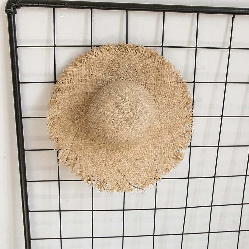 Chapeau de soleil rond avec bords effilochés en raphia pour femmes