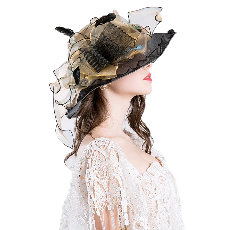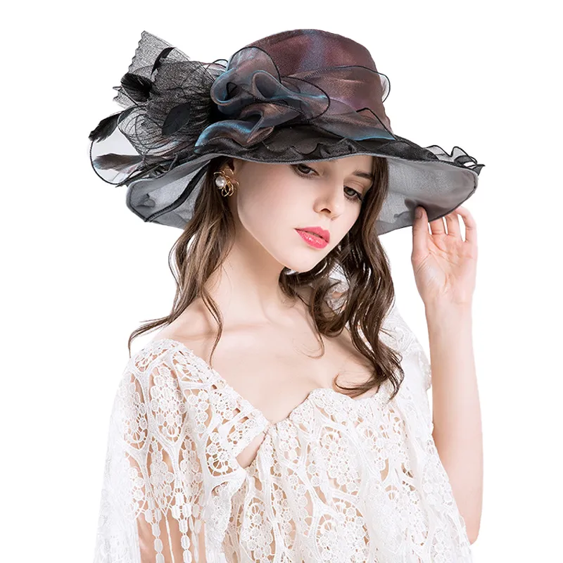 Beaucoup de raffinement pour ce chapeau en Organza avec de belles finitions. Conception à Double couche: organza et gaze de haute qualité, Le design élégant du ruban fleur en dentelle apporte un charme et une finesse très féminine. Le chapeau est très léger, respirable et confortable et son large bord de 10cm assure une bonne protection solaire.  En Organza cet accessoire se porte idéalement pour la Printanière ou estivale.. A l’intérieur du chapeau un cordon de serrage  permet d’ajuster facilement la taille à la plupart des circonférences de tête (entre 56 et 58 cm). Ce couvre-chef à la fois formel et plein de charme est idéal pour les cocktails, mariage, cérémonies…
