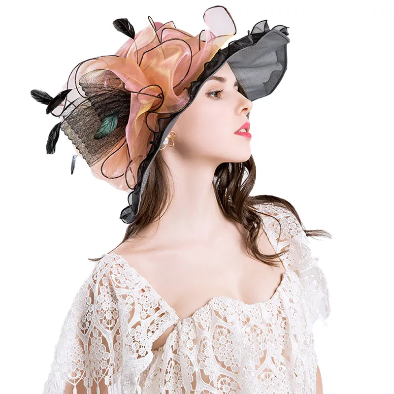 Chapeau en Organza fleurs tulle et plumes
