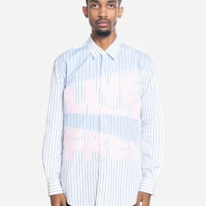 Chemise de bowling confectionnée en fil de lin texturé. Cette pièce en tricot présente une fermeture boutonnée sur le devant et un col pointu avec des points et un motif brodés surmontés de boutons en nacre.
