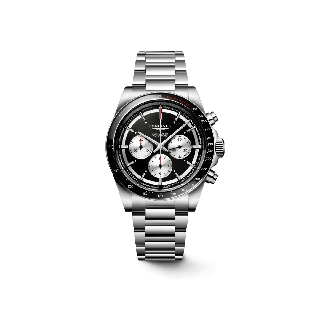 La Maison Longines dévoile la nouvelle Conquest, une montre qui conjugue le savoir-faire suisse à une esthétique soignée. Installée comme incontournable de l’horlogerie depuis 1954, la Longines Conquest perpétue l’esprit d’aventure de la Maison suisse. Cette version chronographe a tout de la montre sportive de luxe par excellence. Un boîtier et bracelet en acier inoxydable pour la robustesse, une étanchéité à 10 bar pour l’aventure, et le calibre L898 de Longines pour la précision. Même la lunette en céramique suit cet esprit sportif, avec son inscription « Tachymeter » en rouge. Chacune de ces montres renferme une alliance subtile de performance et d’élégance.
