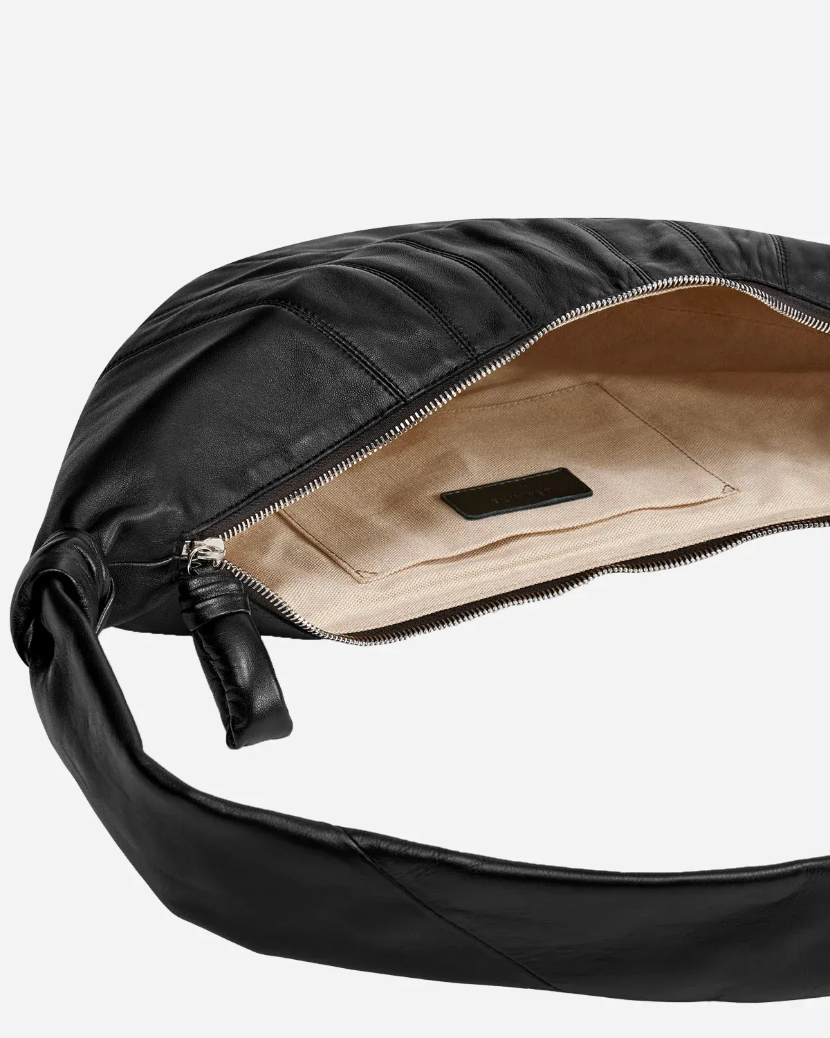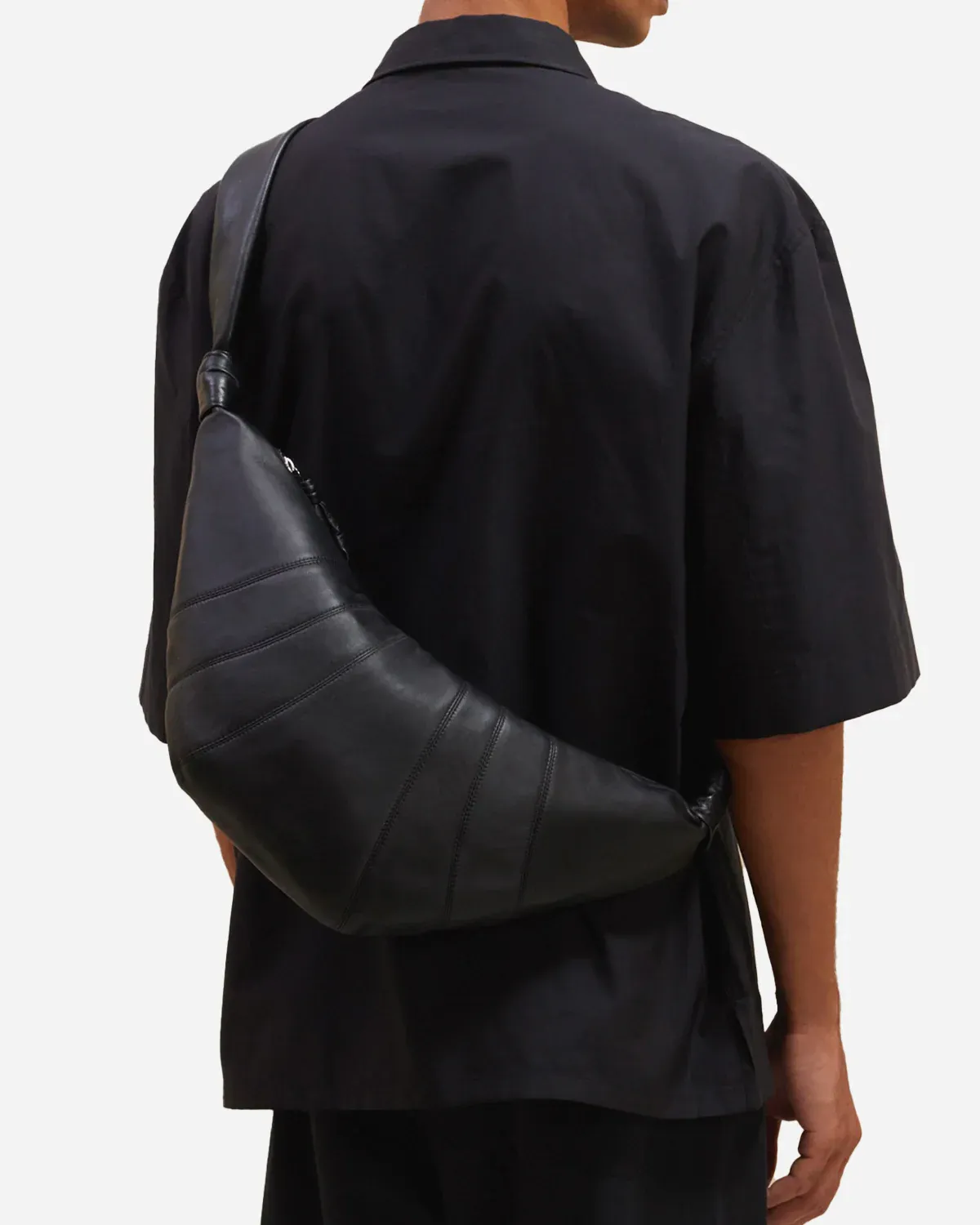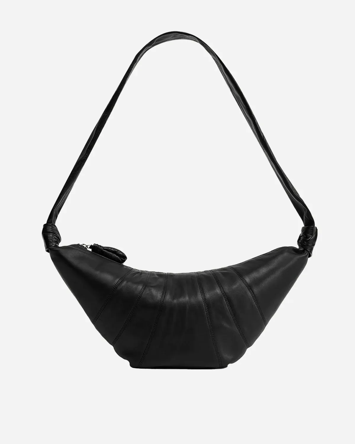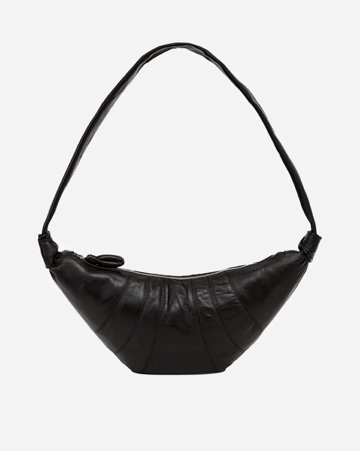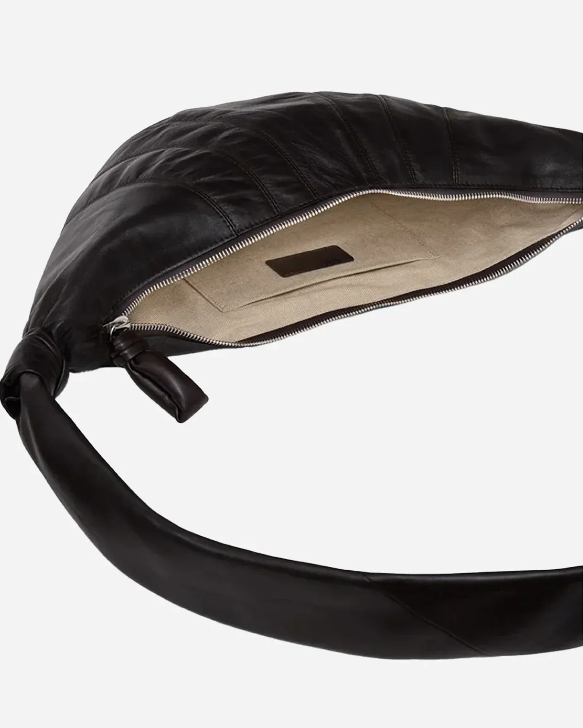 sac croissant moyen, LEMAIRE, cuir nappa d’agneau doux, assemblage de découpes cousues sur le dessus, sac à bandoulière.