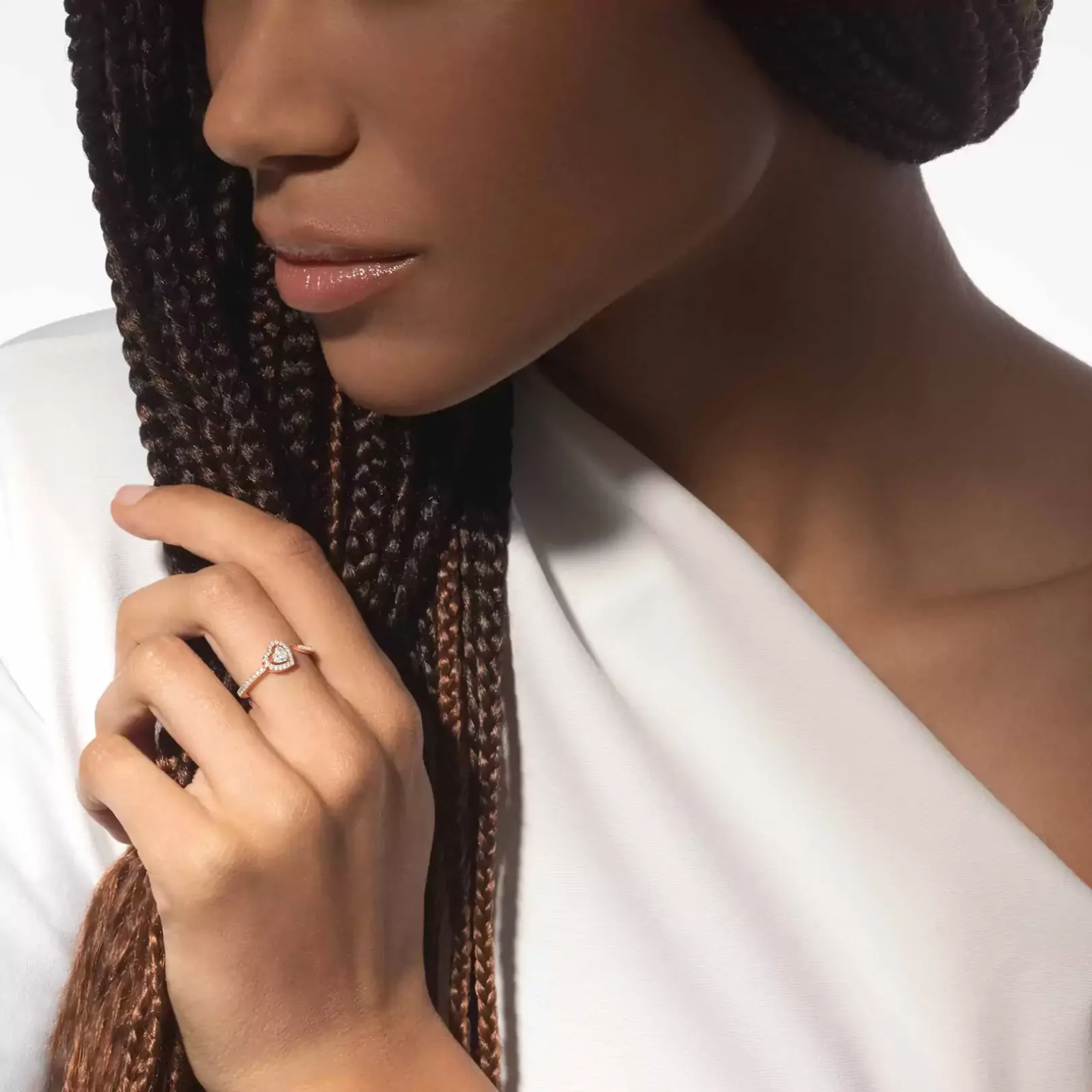 Symbole d’amour et de tendresse, la bague Joy Cœur de Messika réinvente le solitaire avec délicatesse. Son design ouvert sublime un diamant éclatant en forme de cœur, capturant la lumière sous tous les angles. À la fois romantique et moderne, ce bijou incarne la déclaration d’amour ultime, une promesse précieuse à offrir ou à s’offrir. Cette bague se décline en or rose et en or blanc.