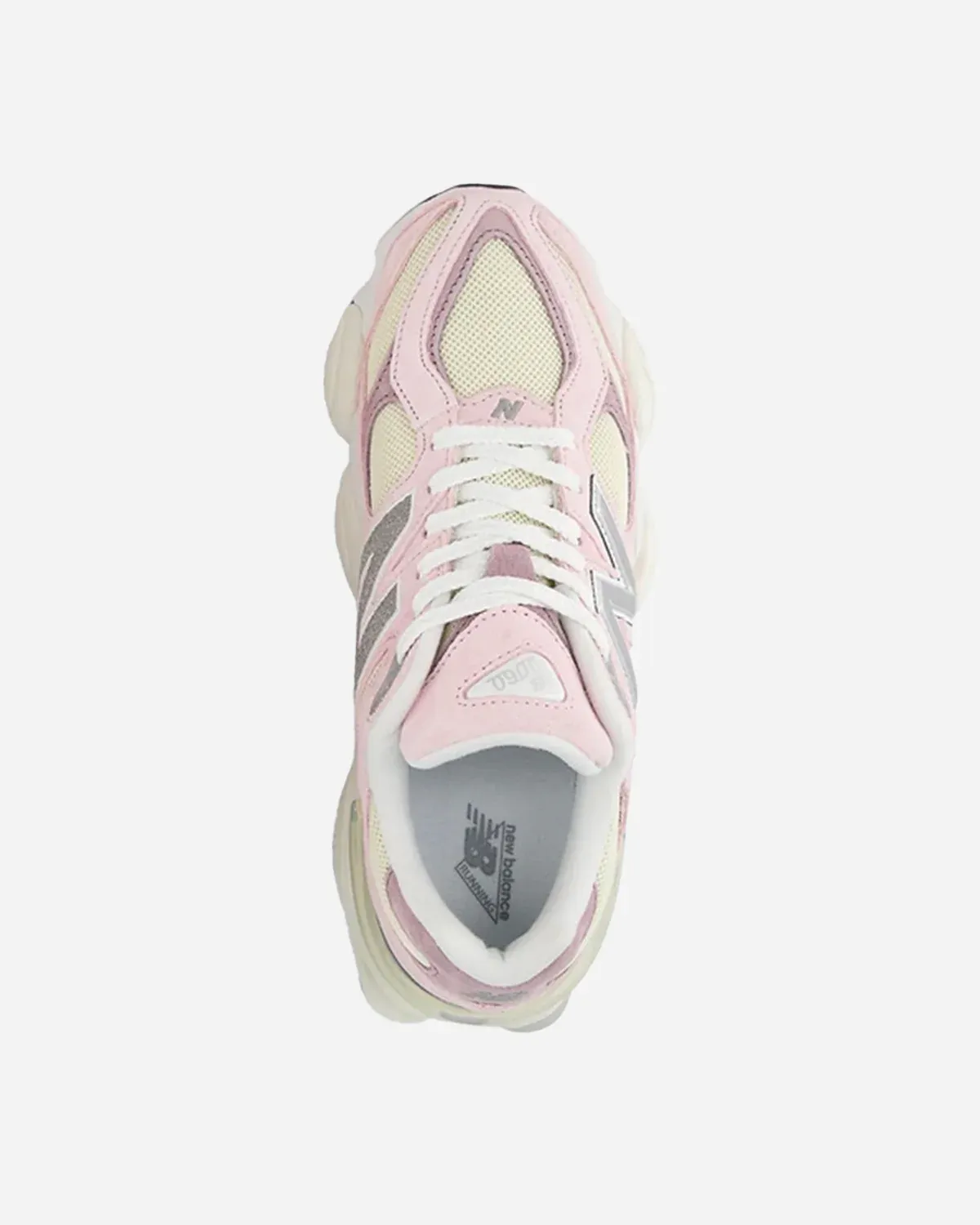 La 9060 est une version revisitée du style élégant et du design innovant de la série 99X classique. La 9060 réinterprète les éléments familiers des 99X avec un sens de la déformation inspiré de l’esthétique tech futuriste ostentatoire et décomplexée des Y2K. Les barres oscillantes, reprises de la 990, sont élargies et utilisées sur l’ensemble de l’empeigne pour donner une impression de mouvement visible, tandis que les lignes ondulées et les proportions réduites sur une semelle intermédiaire sculptée mettent un accent exagéré sur les plateformes d’amorti habituelles d’ABZORB et de SBS.