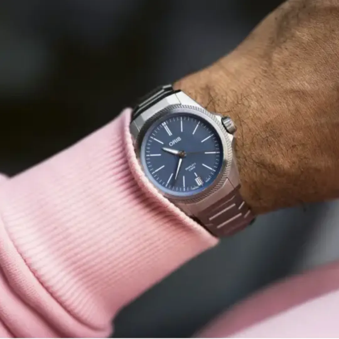 L’Oris ProPilot X Calibre 400 s’inscrit dans la continuité esthétique de la Big Crown ProPilot, tout en affirmant une personnalité moderne et audacieuse. Son boîtier en titane brossé de 39 mm allie légèreté, robustesse et élégance technique. Il protège efficacement le mouvement et le cadran, tout en assurant un port confortable au poignet. La montre est étanche jusqu’à 100 mètres, ce qui la rend parfaitement adaptée à une utilisation quotidienne, y compris pour la douche, le bain ou la natation. À l’intérieur, le calibre automatique Oris 400 assure une performance remarquable avec une réserve de marche de 120 heures.