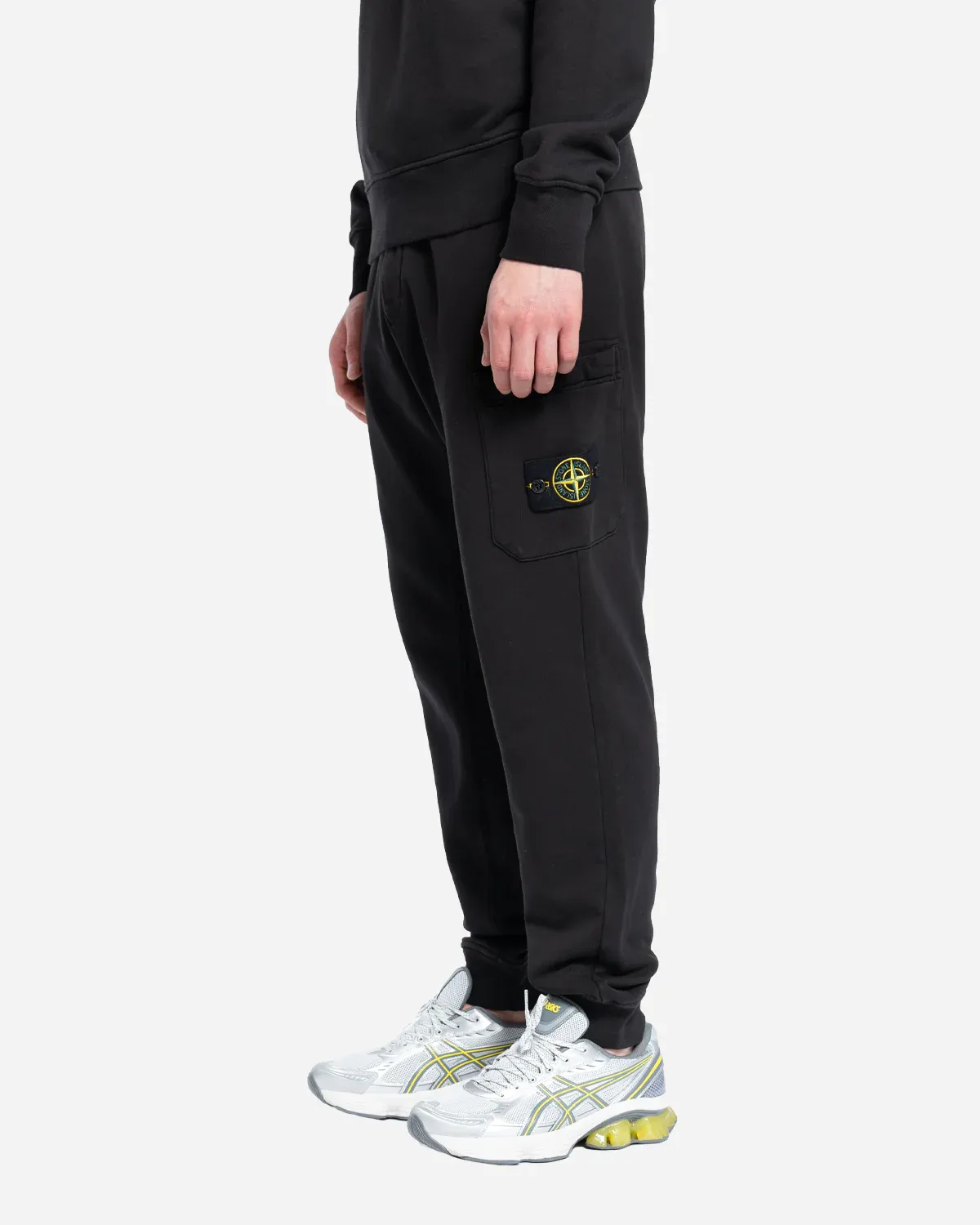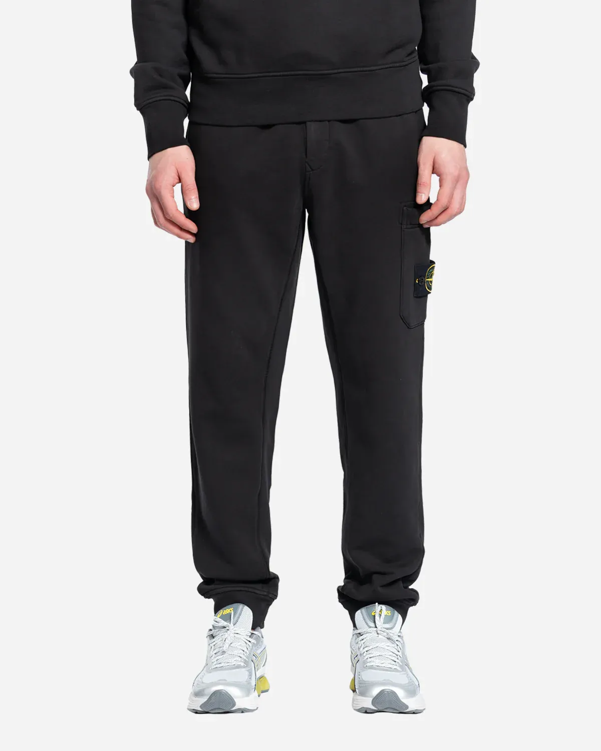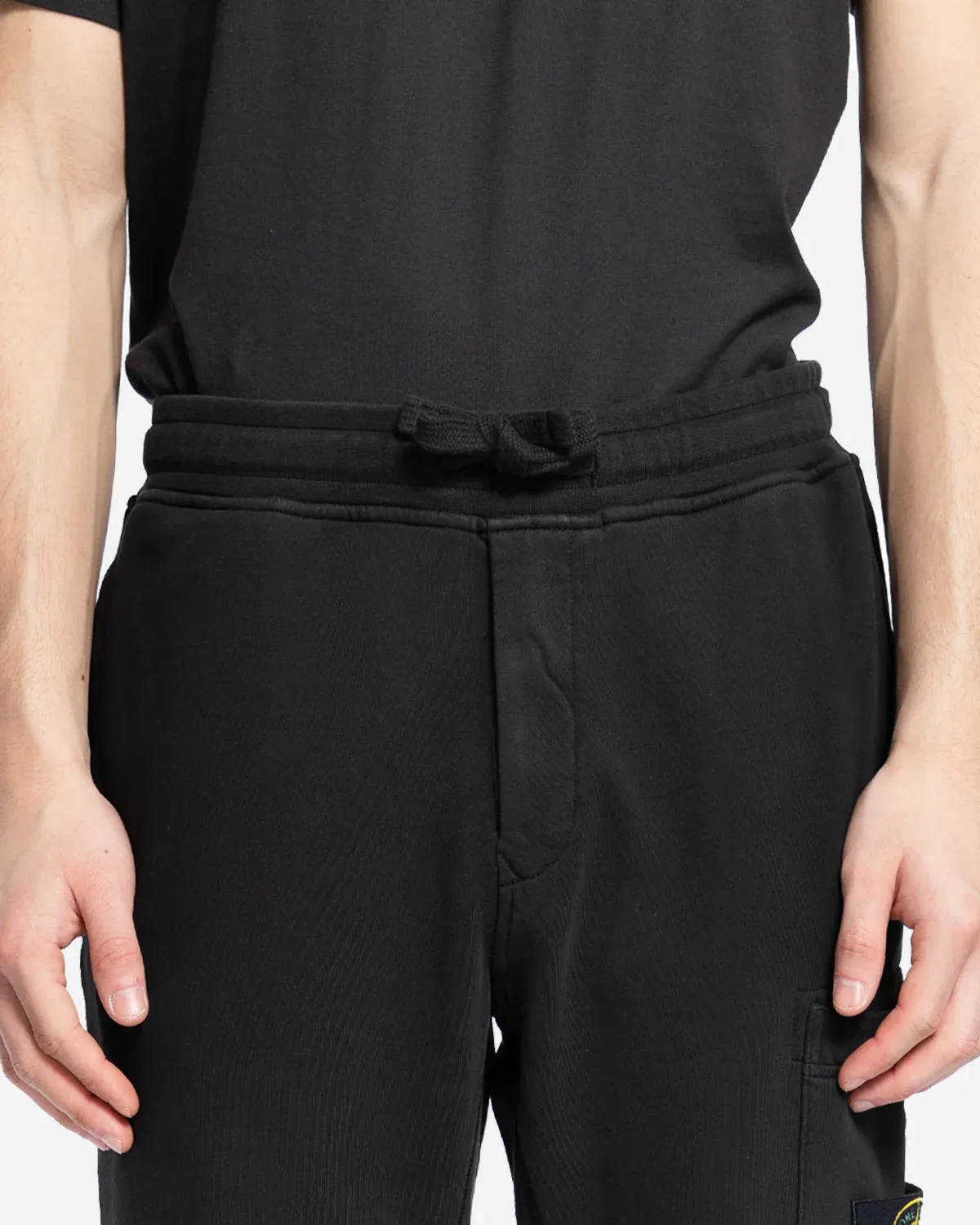 Jogging en molleton de coton biologique avec poches mains, poche fendue pressionnée au dos, poche plaquée zippée sur la jambe gauche et taille élastiquée à cordon de serrage. Modèle teint en pièce.