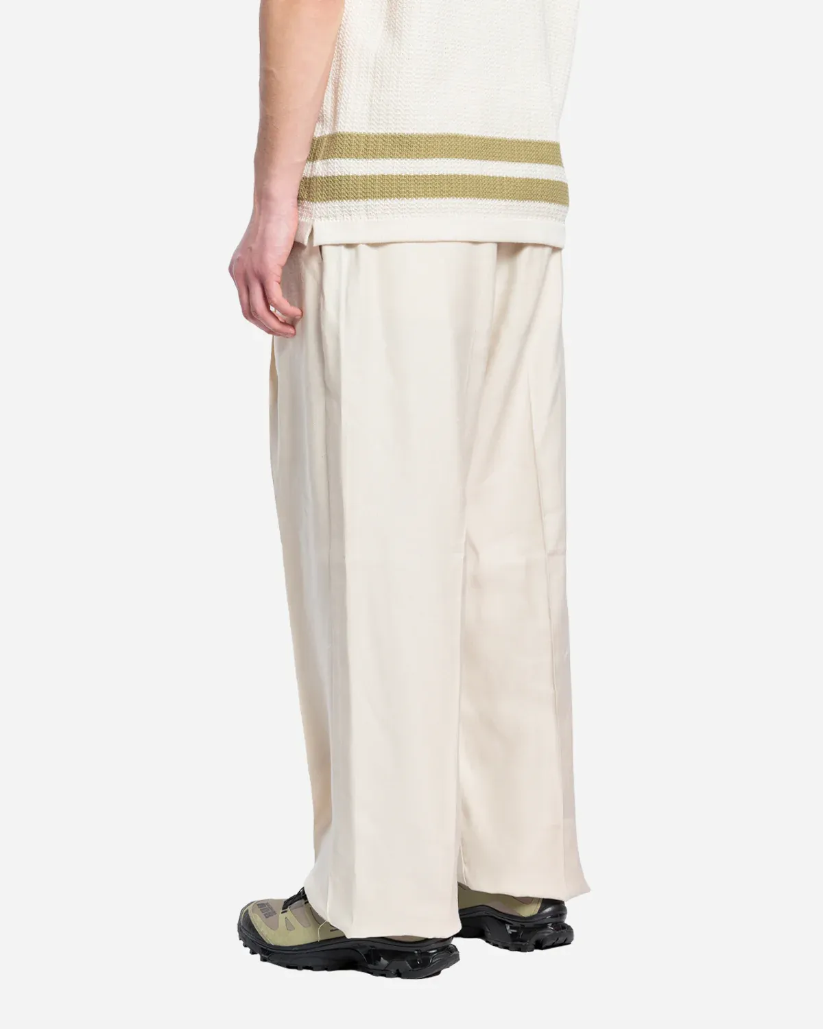Pantalon en twill coupe décontractée est confectionné dans un mélange de viscose et de lin , teint en pièce . Conçu avec une taille élastique pour plus de confort.