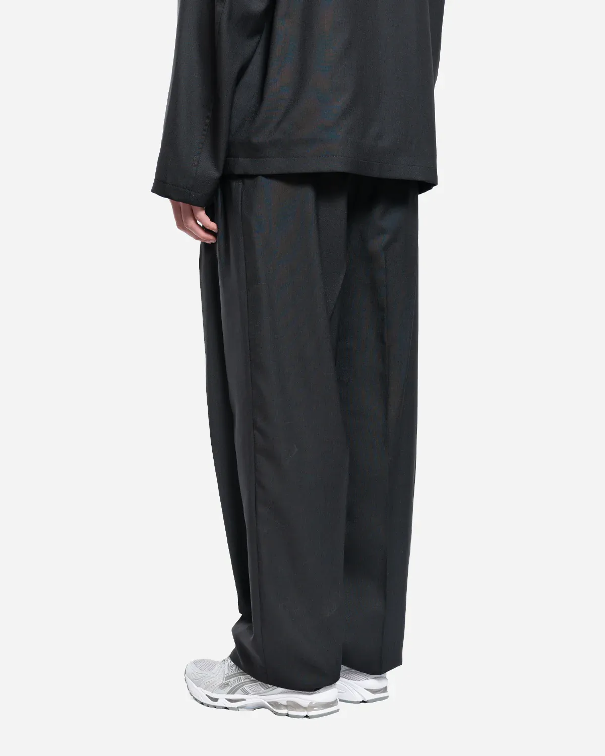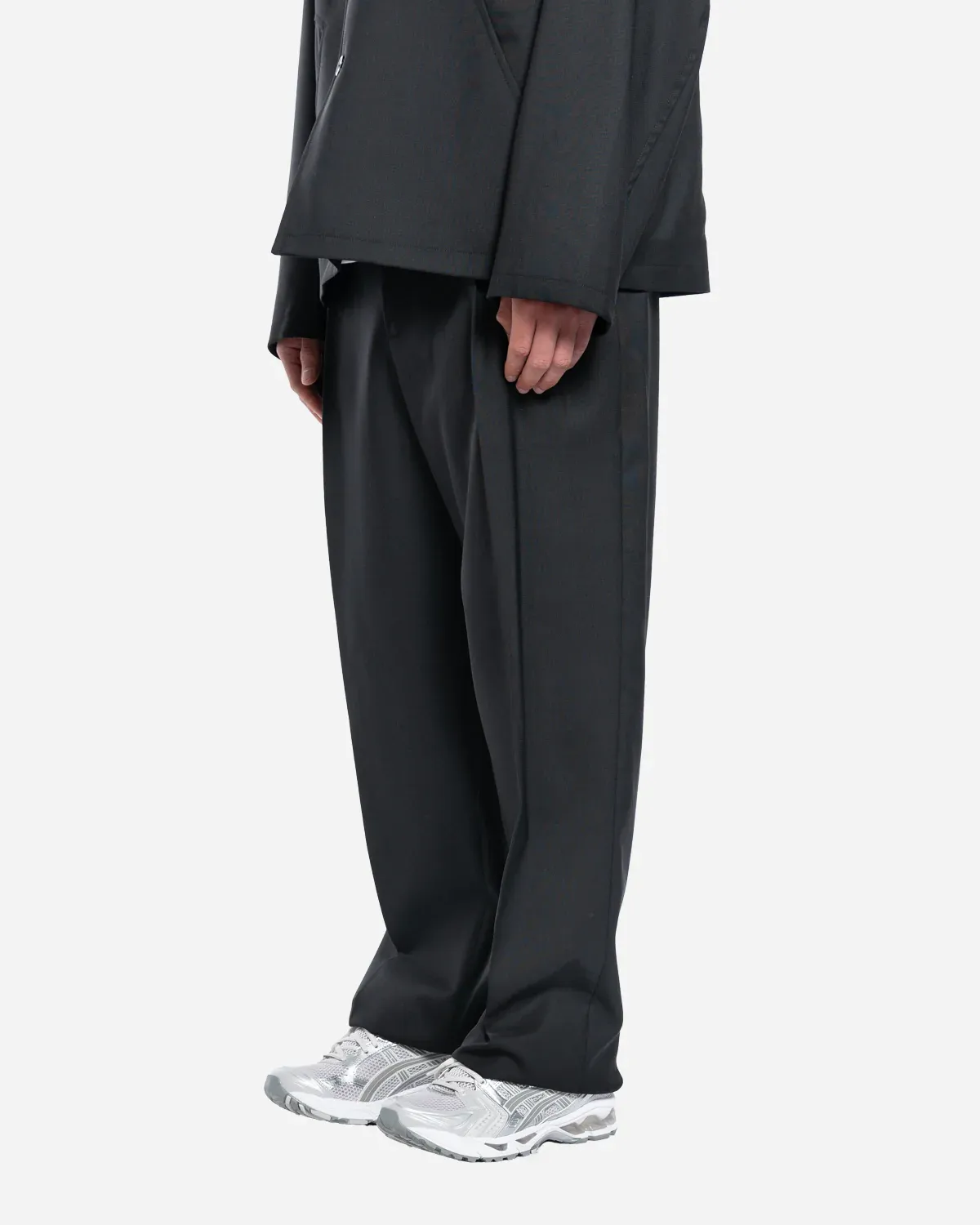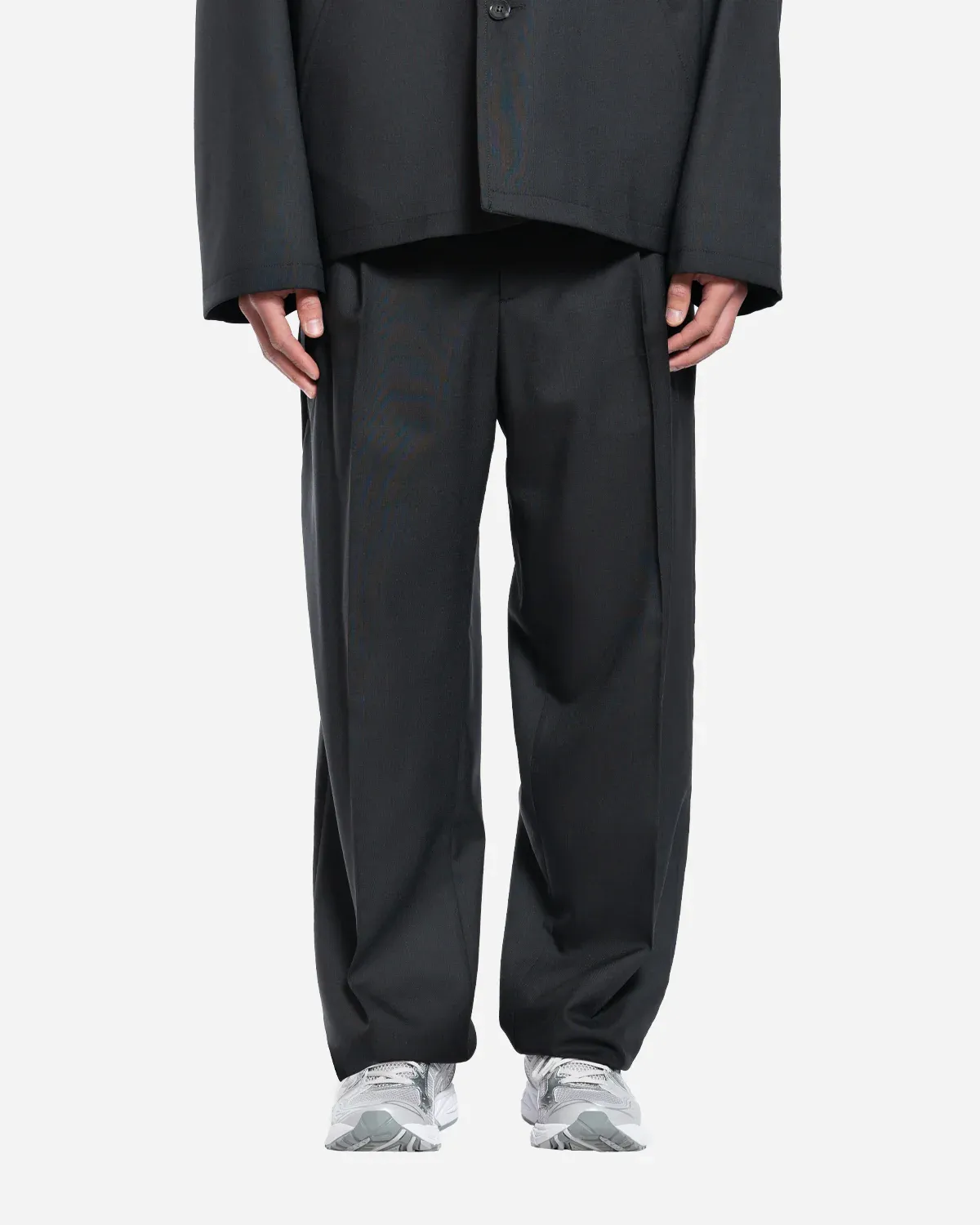 Le pantalon Two Pleats présente un design plissé traditionnel et est confectionné en luxueuse laine froide noire italienne, pour un look élégant et confortable. Fabriqué dans des ateliers français, il comporte également deux poches arrière incrustées.