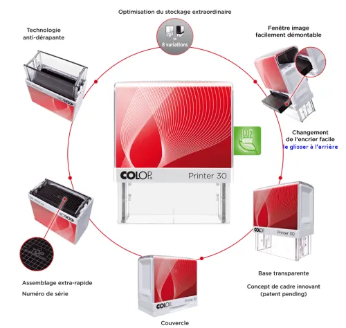 Tous nos tampons Printer line sont fournis avec une empreinte caoutchouc laser Eco Line anallergique.