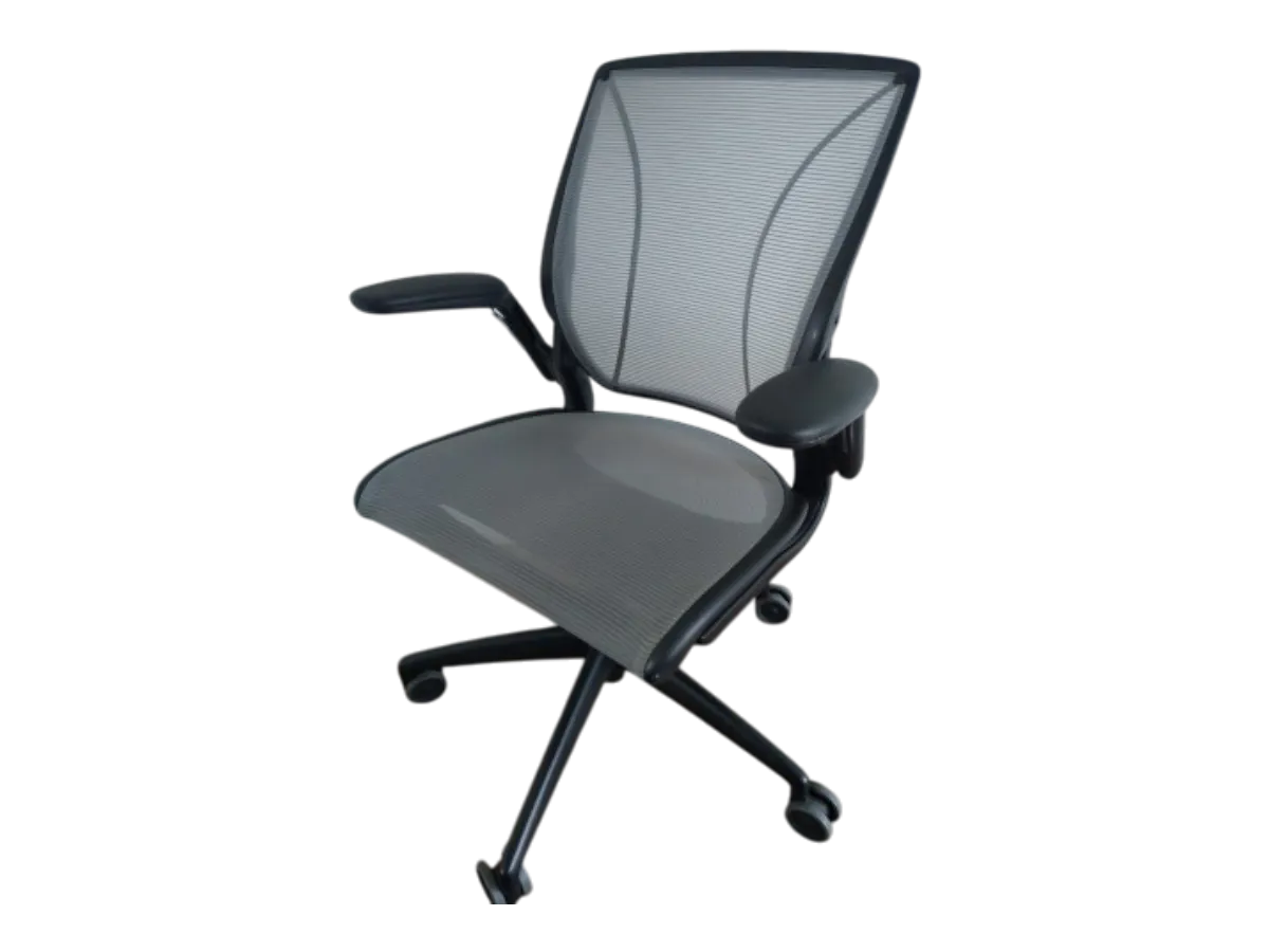 Avec un dossier en maille à trois panneaux innovant qui offre un soutien dorsal et lombaire personnalisé et une conception légère, Diffrient World est, comme tous les produits de Humanscale, simple, beau et fonctionnel. La conception élimine le besoin de mécanismes traditionnels, utilisant à la place les lois de la physique et le poids corporel de l’utilisateur pour offrir une inclinaison parfaite pour chaque utilisateur.