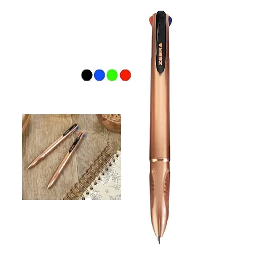 Stylo 4 couleurs (noir, bleu, rouge, vert) édition limitée ROSE GOLD. Sa mécanique de grande précision grâce à la bille au tungstène. Son procédé hybride LPHV (Low Pressure-High Volume) combine astucieusement les avantages du stylo bille à ceux de l’encre gel, pour une glisse incomparable sur le papier.