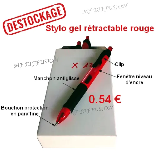 Boite de 12 stylos gel rétractable rouge : procure une très grande douceur d´écriture.