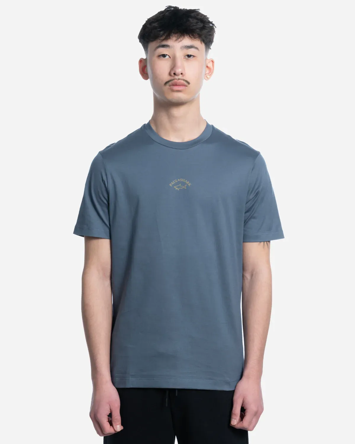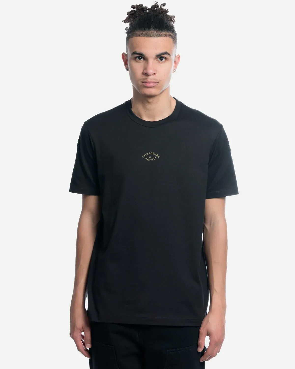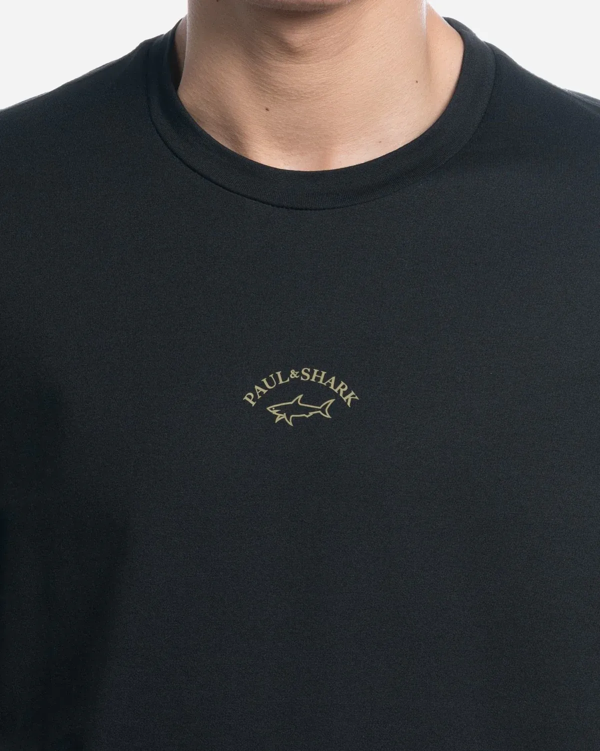 T-shirt à col rond et manches courtes, avec un logo Paul and Shark au centre gold.
