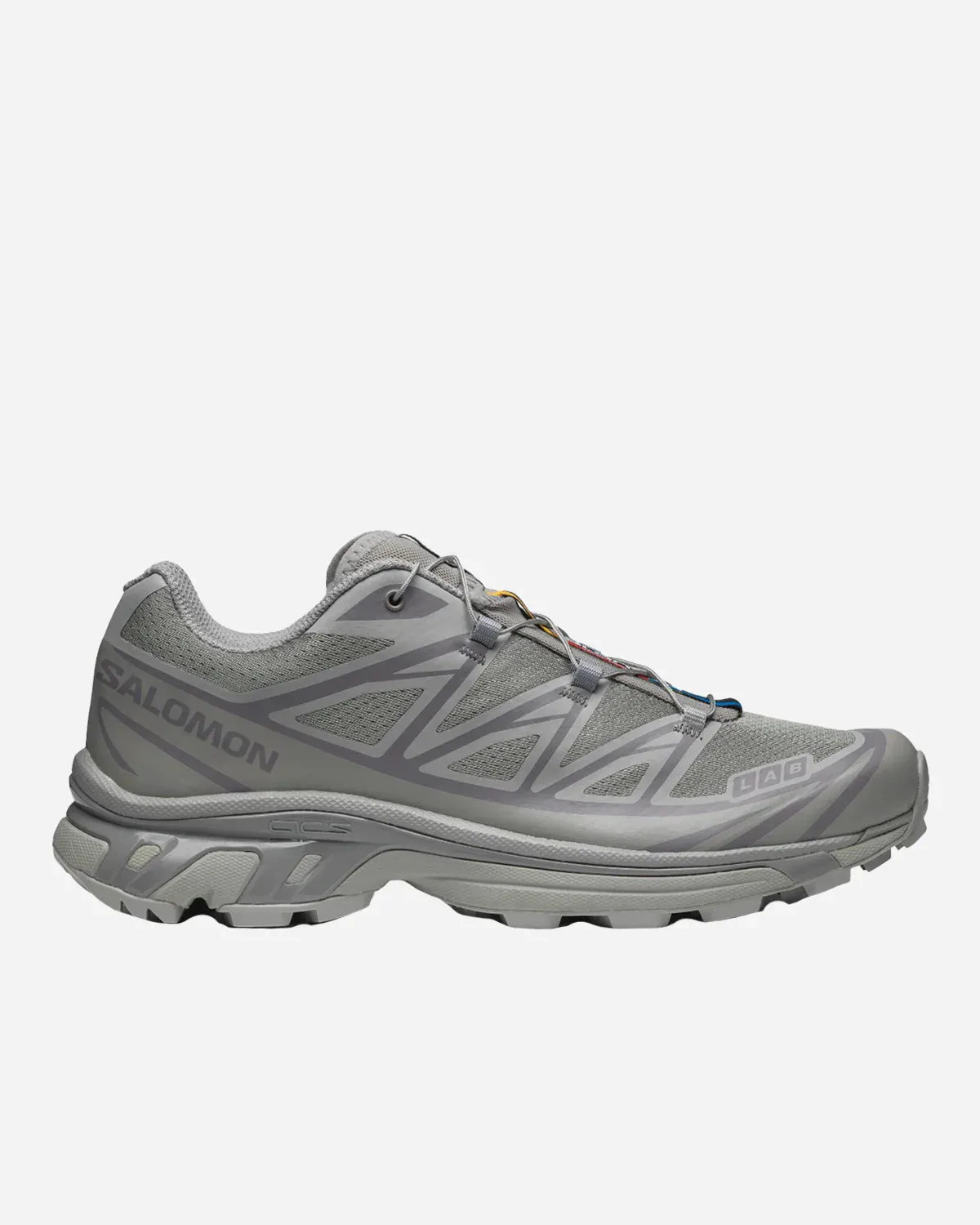 Baskets, lacets quicklaces, bande tissu brodé, logo Salomon, semelles en caoutchouc